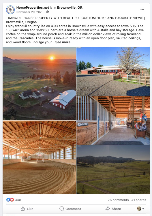 HorseProperties.Net® is the premier destination for equestrian properties. With millions of page views, excellent website engagement, and thousands of sessions, you can be assured of buyers actively searching for equine real estate.