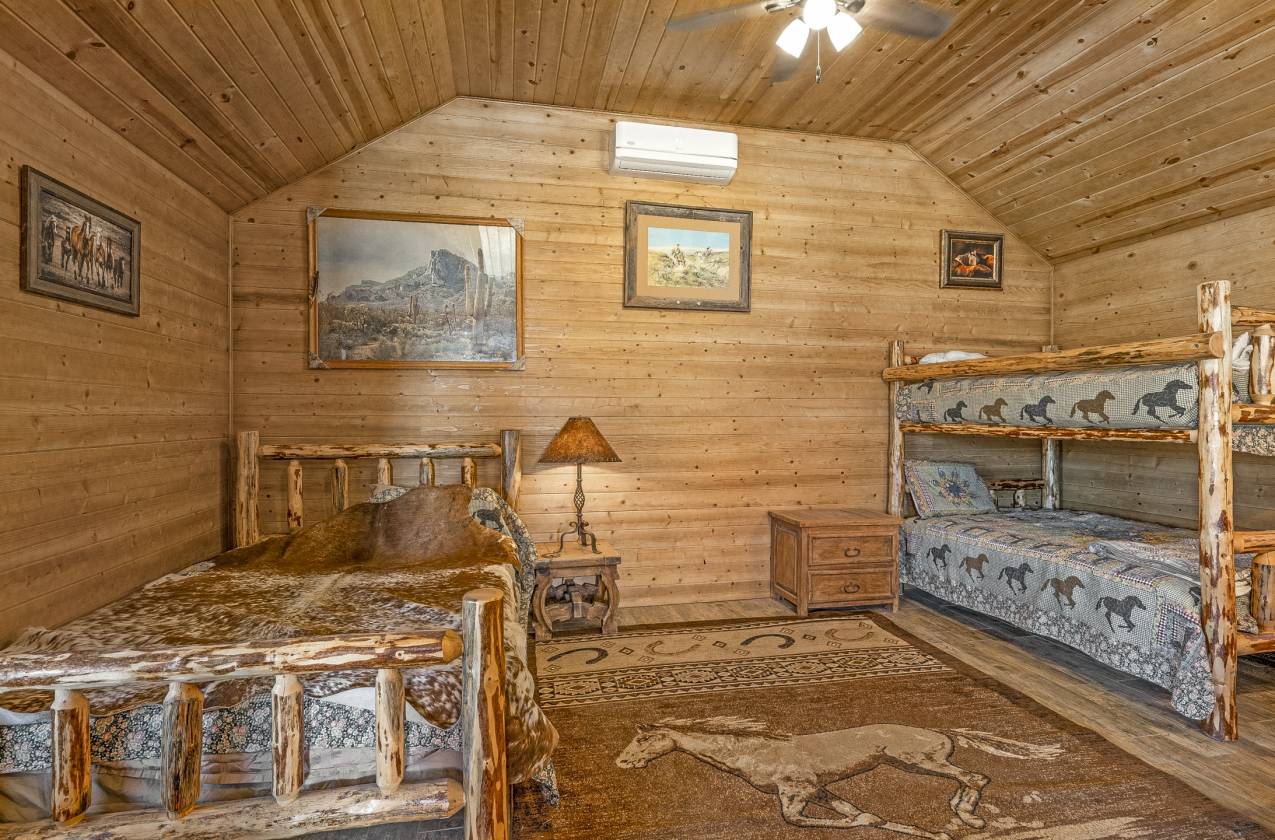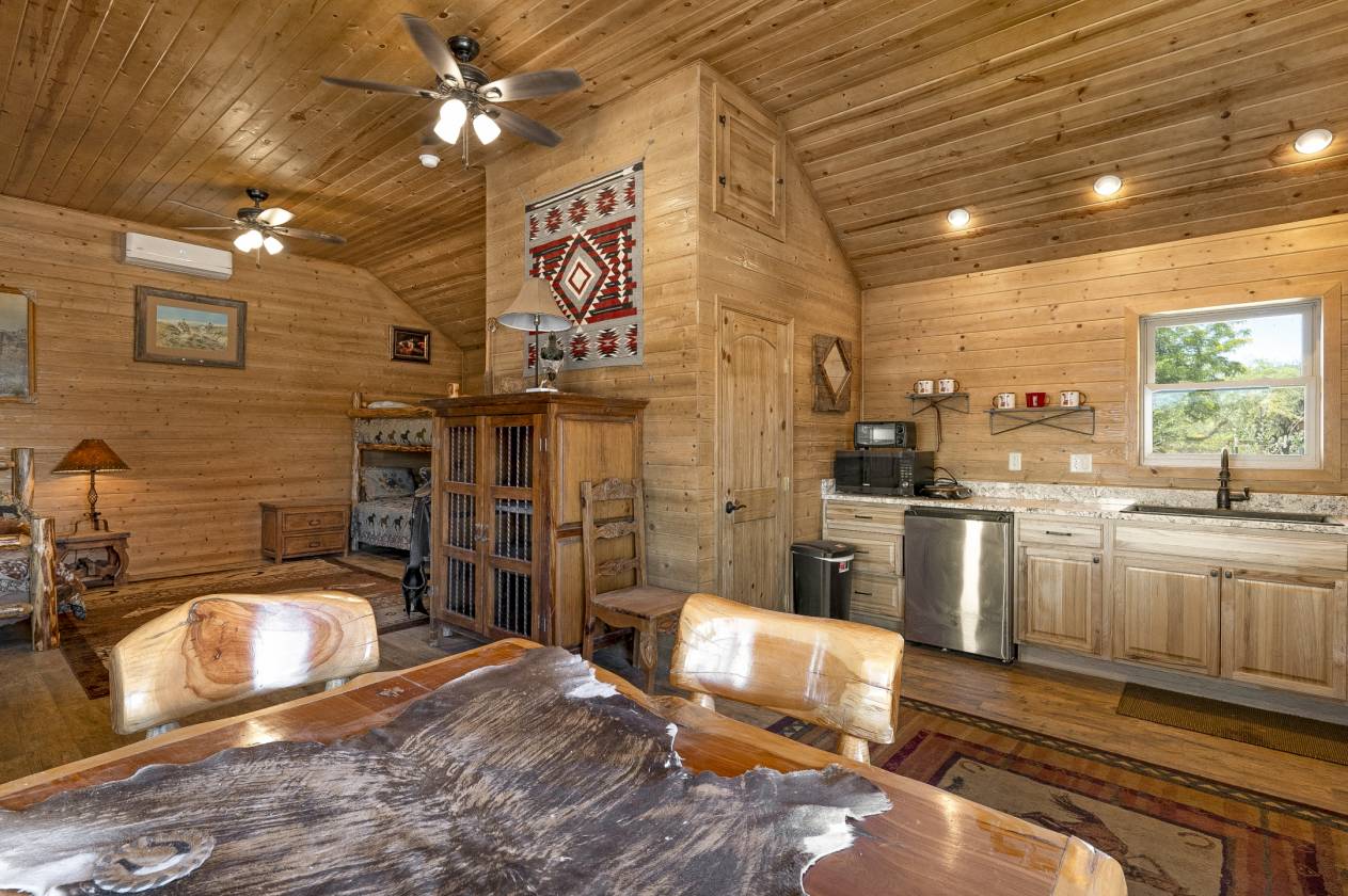 - The property also includes a 2018-built 608 sq ft bunkhouse (1BD/¾ BA studio) with a versatile layout that currently sleeps four& is being offered fully furnished!