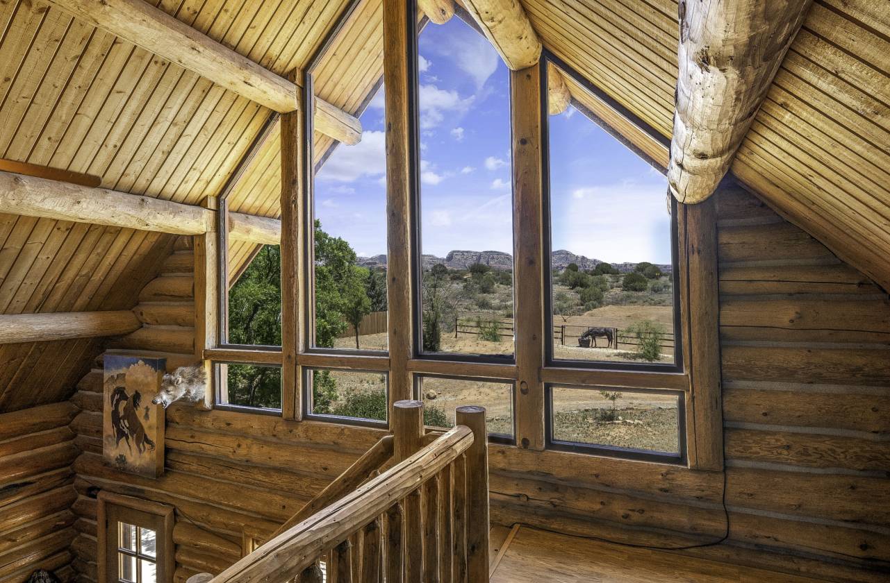 - The charming main log home (1BED/1BA + loft) features soaring ceilings, large windows that flood the home with natural light, and a warm, rustic feel. The gourmet kitchen is complete with stainless steel appliances, granite countertops, filtered water, a walk-in pantry, and a spacious island/breakfast bar. Step outside to the paved back patio, ideal for barbecues, soaking up the Arizona sunshine, or stargazing under Sedona’s clear night skies.