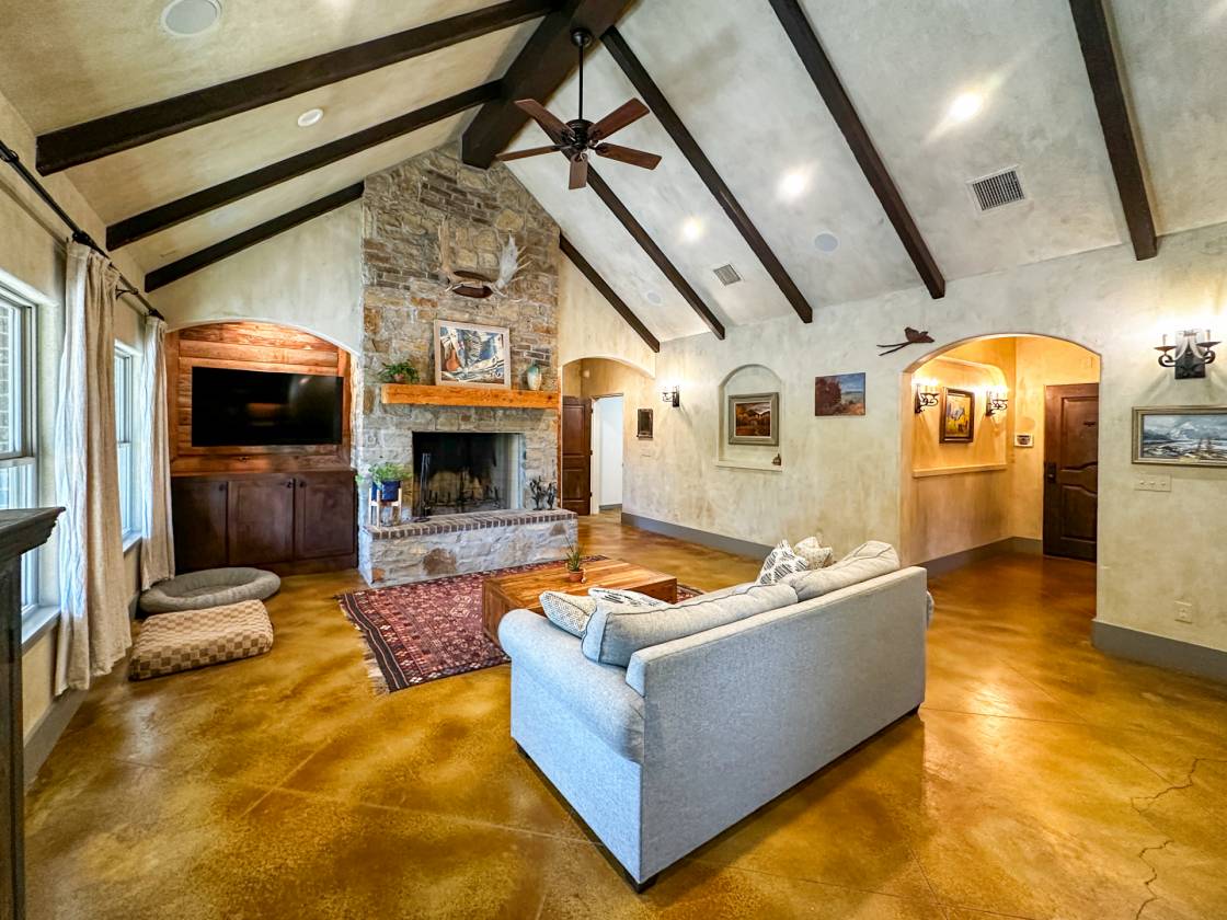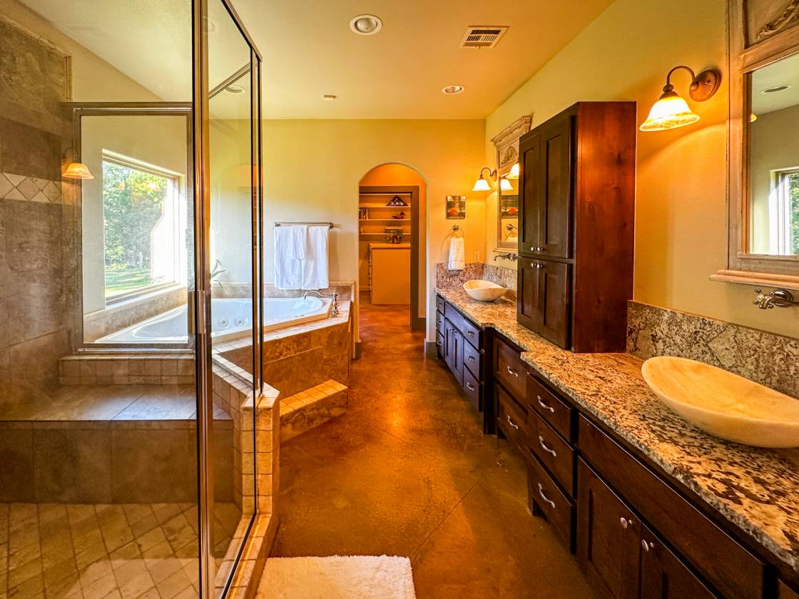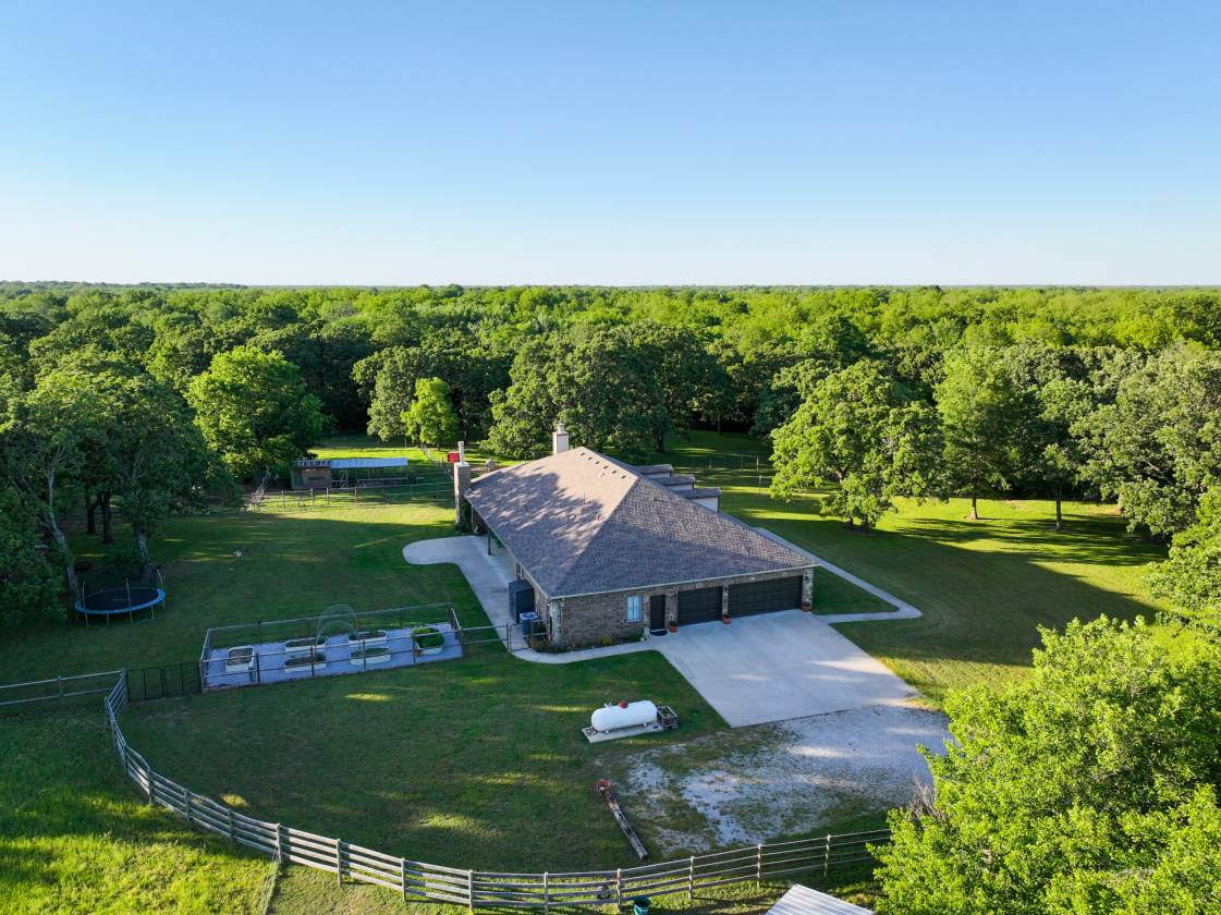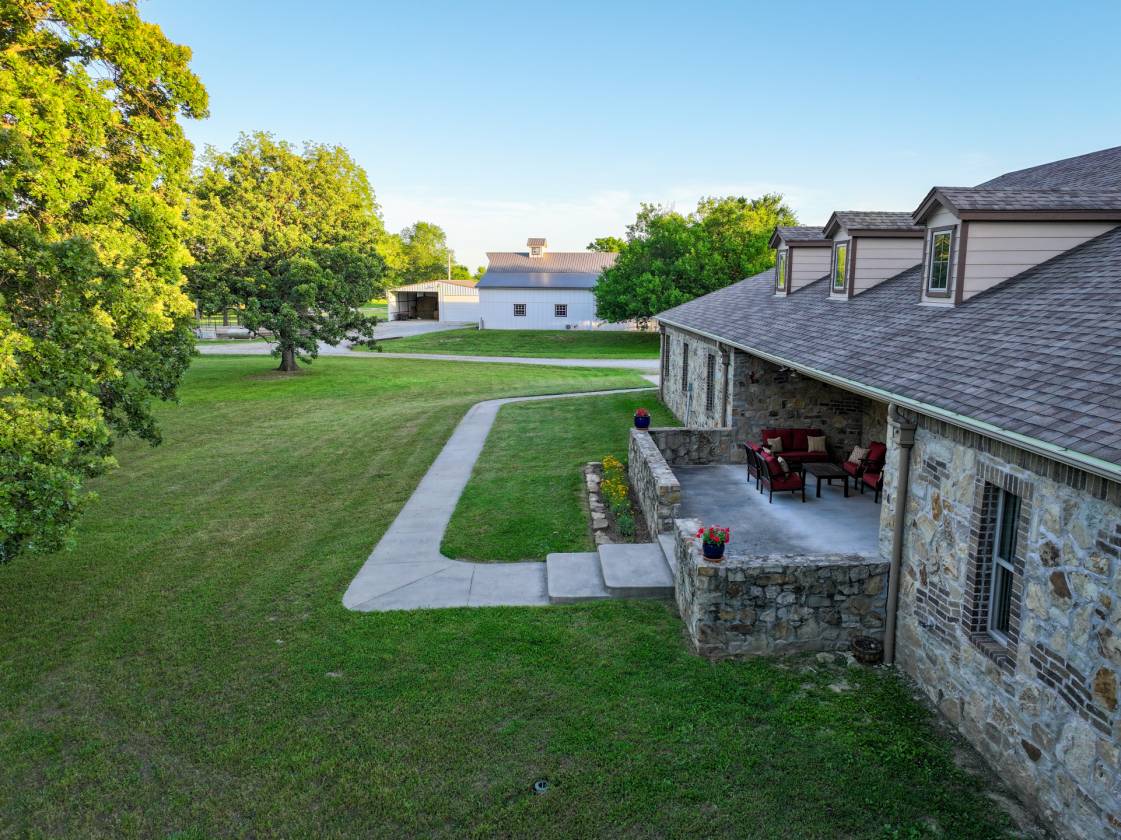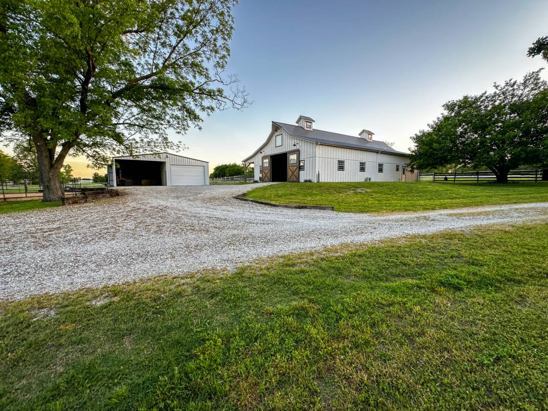 Welcome to the Horsepen Creek Ranch, a private +/- 25 acre retreat just +/- 2.5 miles northeast of Collinsville, Oklahoma! Located in sought-after Tulsa County, this turnkey ranch blends upscale country living with premium equestrian and recreational amenities; all behind a remote-controlled gated entry. At the heart of the property sits a spacious 3,325 sq ft single story home, thoughtfully laid out with an open-concept floor plan perfect for entertaining and everyday comfort. The kitchen is a showpiece, featuring granite countertops, a gas range with vent hood, custom cabinetry, and an oversized walk-in pantry with plenty of built-in storage. Just off the kitchen, the dining area flows effortlessly into a cozy living room anchored by a floor-to-ceiling stone fireplace, creating a warm, inviting atmosphere. The primary suite offers generous space and privacy, with an oversized bedroom, luxurious bathroom, dual vanities, a jetted tub, walk-in shower, and a huge master closet with a built-in safe room and hidden gun safe. The home includes 4 bedrooms and 3 bathrooms in total, with ample storage, a central laundry area, and well-appointed guest rooms. For equestrian enthusiasts, the property includes a 40x70 horse barn with 5 custom stalls, water and electric, and a climate-controlled tack room (mini split), and a half bath. Nearby is a 40x40 steel-frame shop with a concrete floor and two 20x40 bays. One is insulated and ideal for equipment storage, workspace, and tools. The other is ideal for parking vehicles and storing hay. The grounds are fully set up for horse training and recreational usage. There is a 100x200 arena pad leveled with 150 loads of dirt, a 6 inch aggregate base and topped with screenings, just waiting for you to apply the finishing touch. There is also a round pen, fenced pasture, woods and trails for riding or hiking. Soak in the natural beauty along Horsepen Creek along the northern boundary, which offers deer hunting and creekside fishing opportunities. This property is conveniently located +/- 8 minutes from 4 grocery stores, +/- 20 minutes from the Tulsa International Airport, +/- 30 minutes from downtown Tulsa, +/- 33 miles from Bartlesville, Oklahoma, and only +/- 40 miles from the Kansas state line. Don’t miss this chance to own your one-of-a-kind luxury ranch in Oklahoma.